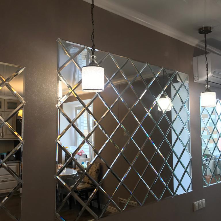 Использована зеркальная квадратная плитка с фацетом.
